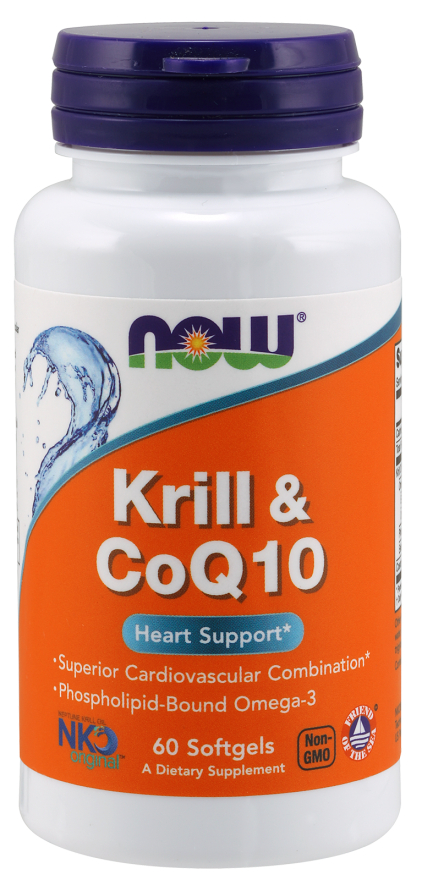 NOW® Krill & CoQ10 Softgels combine two of the most prominent and effective nutrients for cardiovascular health in one convenient supplement.* CoQ10 is a vitamin-like compound that’s clinically demonstrated its ability to support heart health through its effects on cellular energy production.* Krill oil has naturally occurring omega-3 essential fatty acids, which are well-known for their vital role in cardiovascular health.* Together these two nutrients form a powerful combination supplement for the support of normal, healthy, cardiovascular functions.*